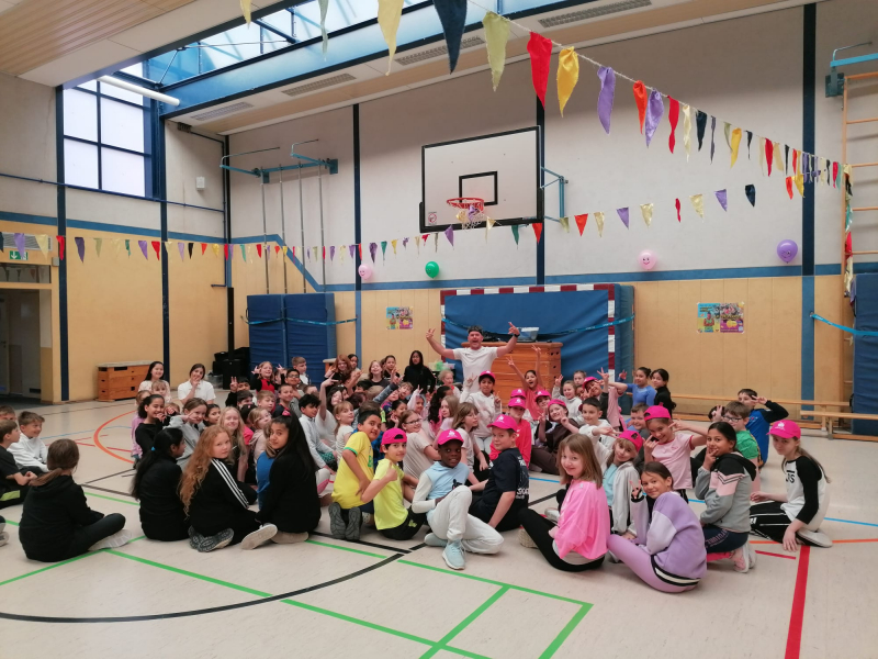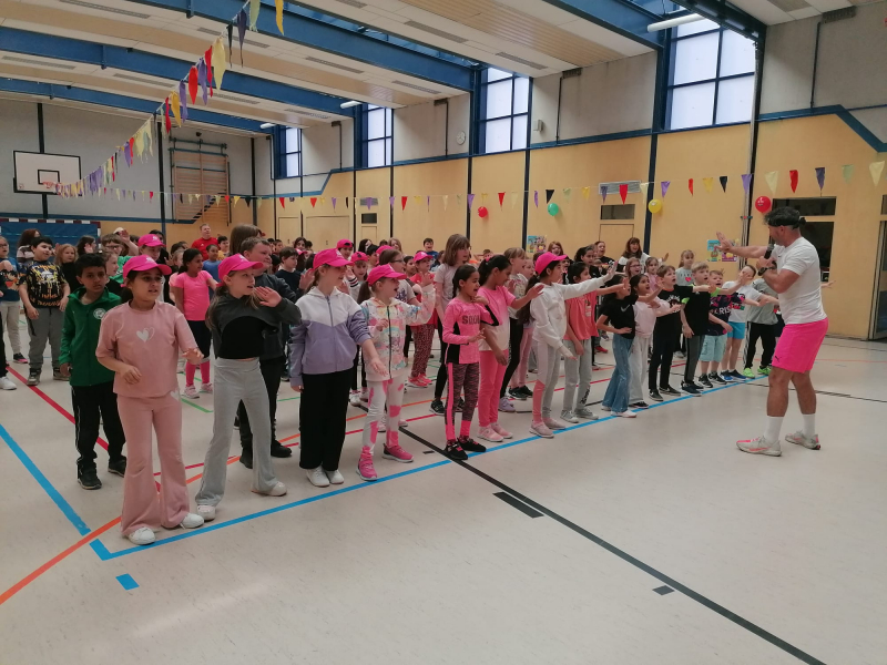 Schon am Morgen war klar: Heute bleibt niemand still stehen! Gemeinsam mit einem echten Tanztrainer haben alle Klassen – von den kleinen Wirbelwinden der 1. Klasse bis zu den coolen Großen der 4. Klasse – tolle Choreographien eingeübt.